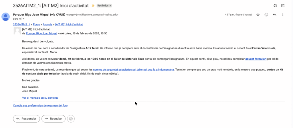 el docente es Ferran Valenzuela, especializado en Textil y Moda.