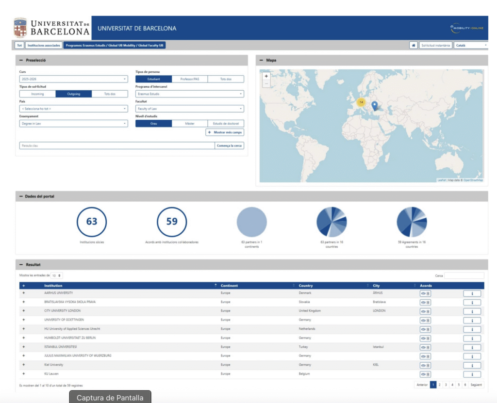 - La adjudicación provisional de las plazas de movilidad se publicará en el tablón de anuncios de la Seu electrónica de la Universidad de Barcelona (https://seu.ub.edu) el 26 de enero de 2026.