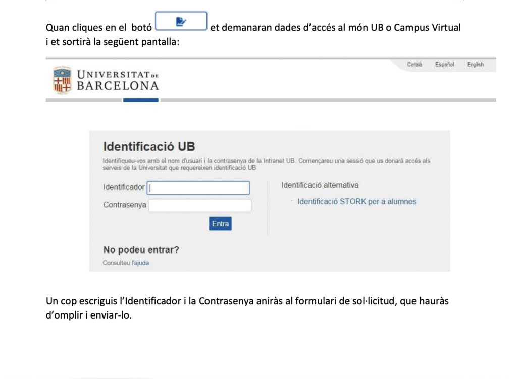 A partir de ahora, para continuar con el procedimiento de solicitud debes utilizar el siguiente enlace: Comienzo de sesión de Mobility-Online UNIVERSIDAD DE BARCELONA (service4mobility.com) o copia el enlace: https://www.service4mobility.com/europe/LoginServlet