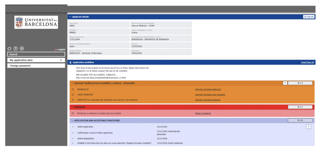 - La resolución definitiva de las plazas de movilidad se publicará en el tablón de anuncios de la Sede electrónica de la Universidad de Barcelona (https://seu.ub.edu) el 19 de febrero de 2026.