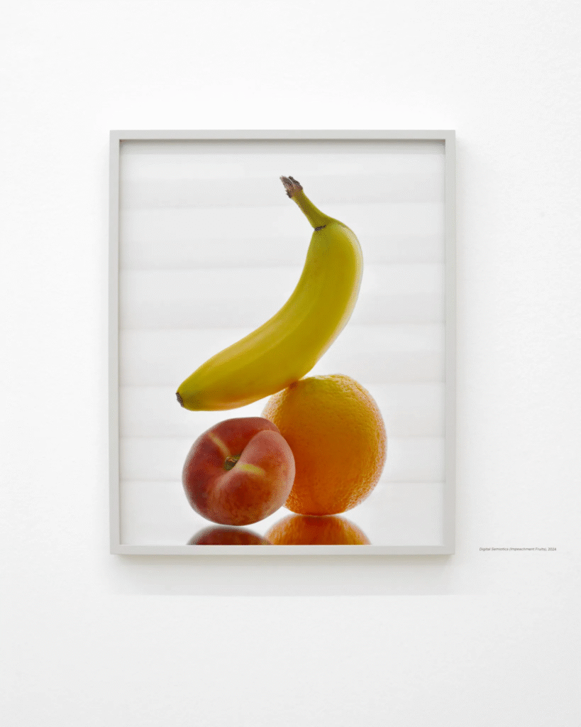 Centrándose en sus significados en constante evolución, sus implicaciones culturales y sociopolíticas, Binschtok analiza cómo los símbolos digitales, como los emojis, enriquecen los mensajes, moldean el discurso público o propician la censura política. La serie destaca el encanto sencillo y fácil de usar de los emojis, al tiempo que enfatiza cómo estos moldean y fomentan conversaciones complejas a través del intercambio, la secuenciación y el contexto, impulsando así la solidaridad y el activismo. Un ejemplo es el emoji de la sandía, que surgió como símbolo de solidaridad con Palestina. De manera similar, el emoji del racimo de uvas facilita sutilmente